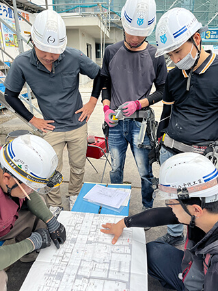 施工管理と職方で朝・昼・夕と『安全・品質・工程・変更』に対して、常にコミュニケーションを図り、確認と打ち合わせを行っております。