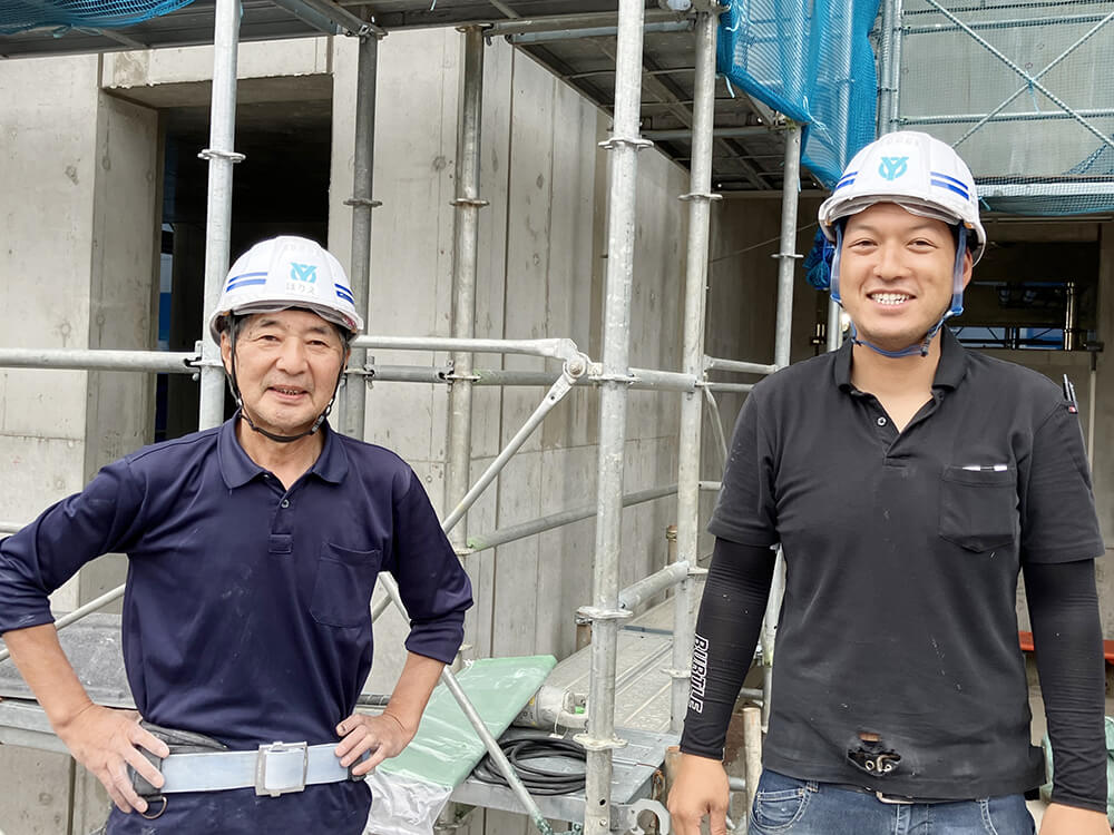 私たちは良い現場環境づくりを常に頭に置き、様々な年齢の職人さん方をいかにバランス良く配置していくかを考え、熟練の職人さんの技術を若い人に伝えていくことを大切にしています。『ホスピタリティ』の精神を事業の根幹に据え、信頼される高品質な施工と人材育成の両立を目指しています。