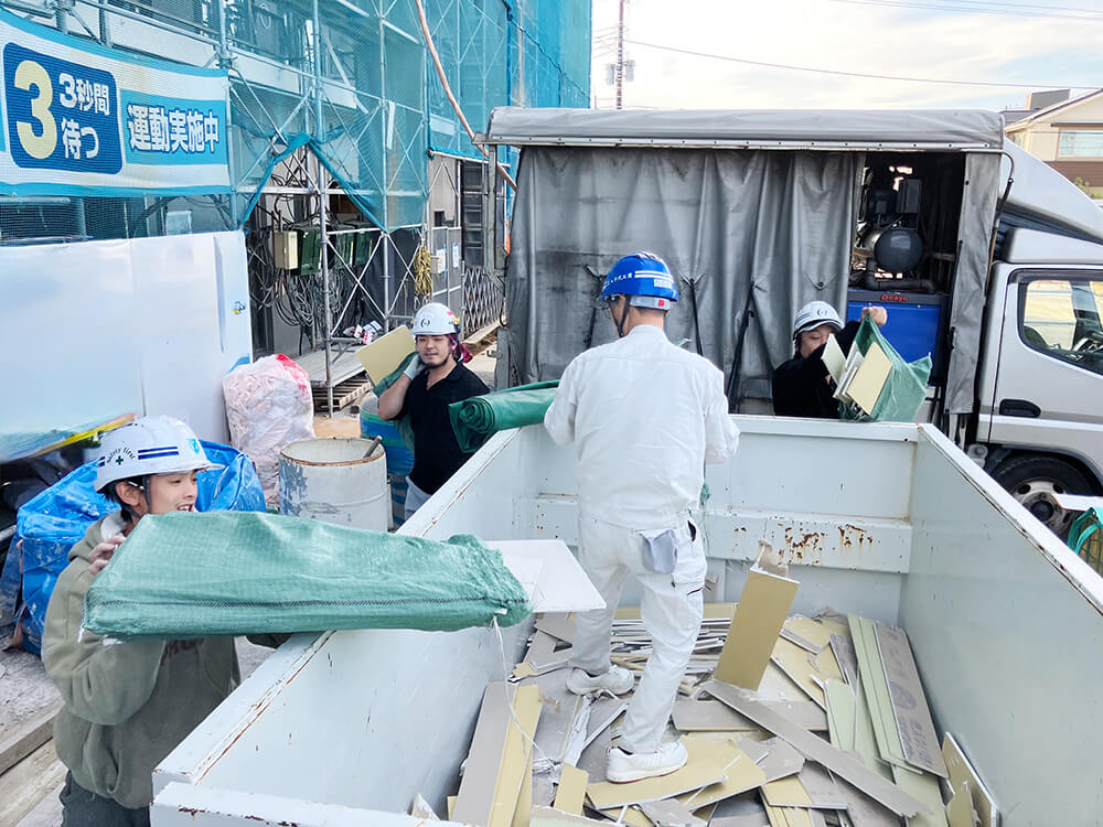 建設現場への資材搬入から廃棄物搬出までワンストップで対応可能、自社のトラックを有効活用し燃料費・人件費の無駄を削減しています。