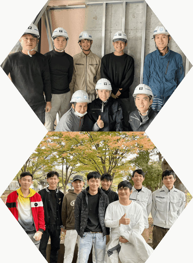 技能実習生や特定技能外国人を雇用し、安定した労働力体制を確立しております。それにより繁忙期や大規模案件にも迅速・確実に対応が可能です。計画的な人材育成と適正な管理のもと「人手不足に強い会社」として、元請様のニーズにお応えしております。また外国人社員には丁寧な教育と指導を行い、高い施工品質を確保し、安全衛生教育の徹底にも力を入れております。